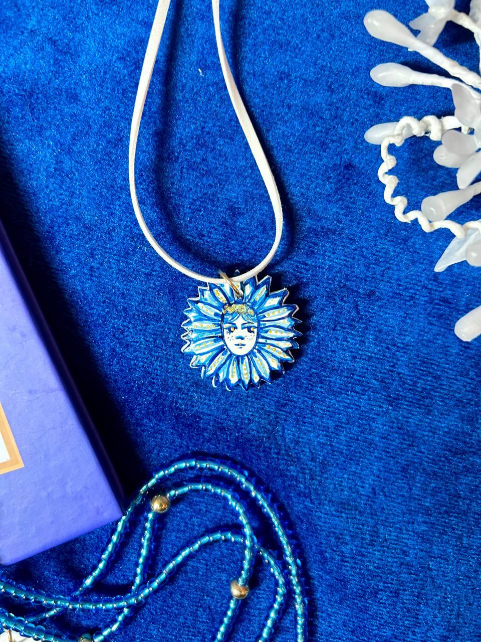 «Дівчина Сонях» прикраса ручної роботи з полімерної глини. Авторська прикраса за мотивами графічних робіт української художниці VkuzArt. Головні кольори колекції синій і золотий - символи: