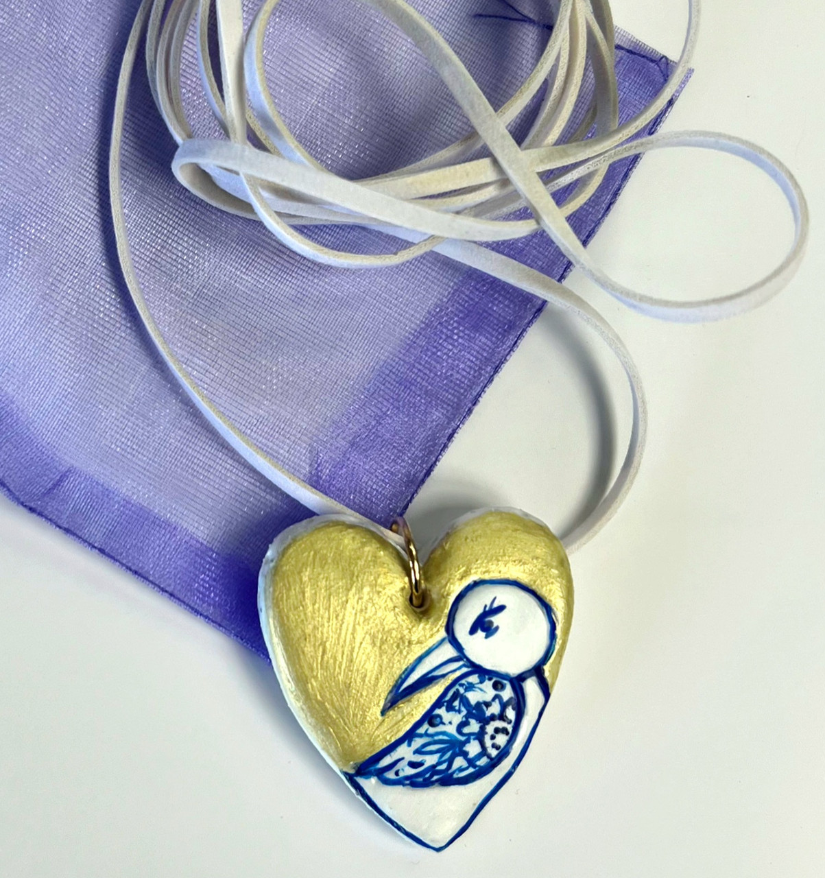 «Сердешна пташка» прикраса ручної роботи з полімерної глини. Авторська прикраса за мотивами графічних робіт української художниці VkuzArt. Головні кольори колекції синій і золотий - символи: