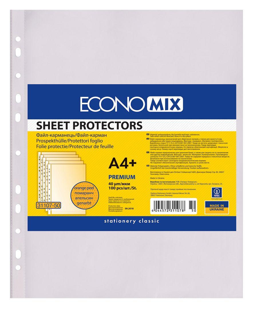 Файл гл. А4+ 40мкм. "Economix" /E31107-50/ фак-ра "помаранч" 100шт/упак (1/15)